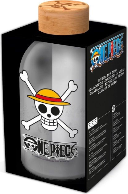 Elegante Glasflasche mit Motiv der beliebten Serie One Piece, mit einem Volumen von 620 ml, ideal für die tägliche Hydratation. Robustes Borosilikatglas und ein praktischer Schraubverschluss gewährleisten eine lange Lebensdauer.