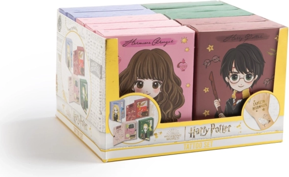 Zeigen Sie Ihre Liebe zur magischen Welt mit unseren temporären Tattoos inspiriert von Charakteren wie Harry Potter, Hermine Granger, Draco Malfoy und Luna Lovegood.