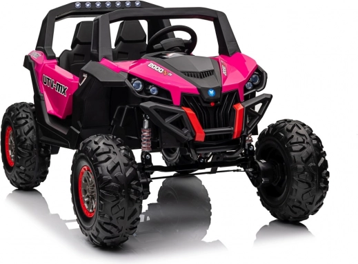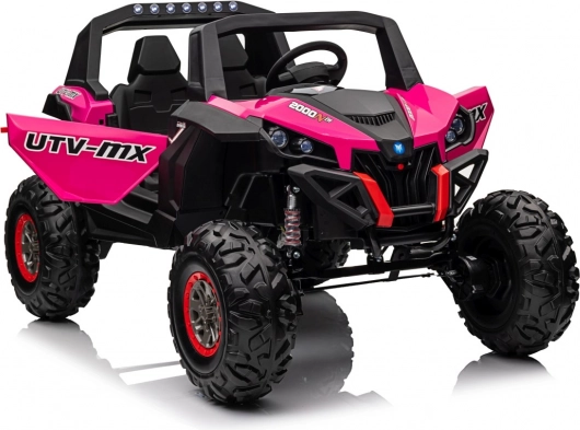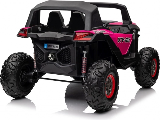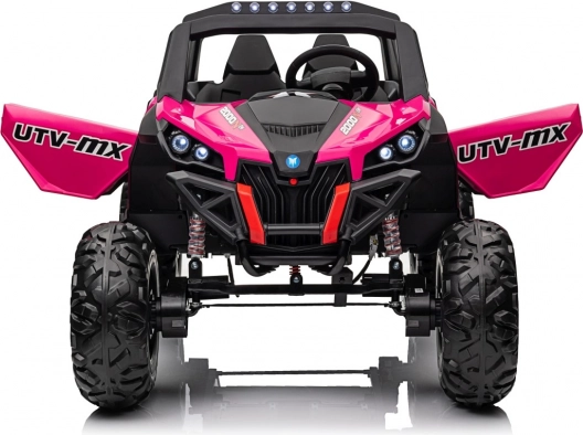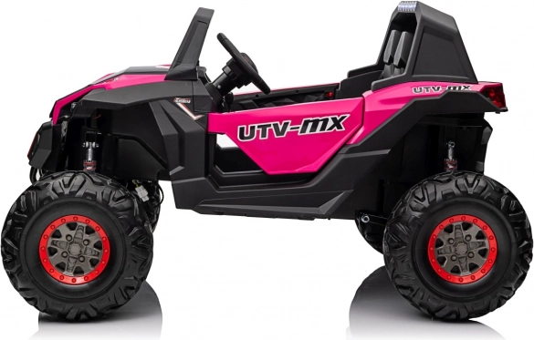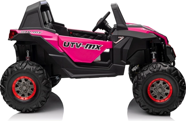 Das Kinder-Geländefahrzeug UTV-MX ist mit großen Reifen und einer widerstandsfähigen Konstruktion ausgestattet, die auch anspruchsvolles Terrain meistert.