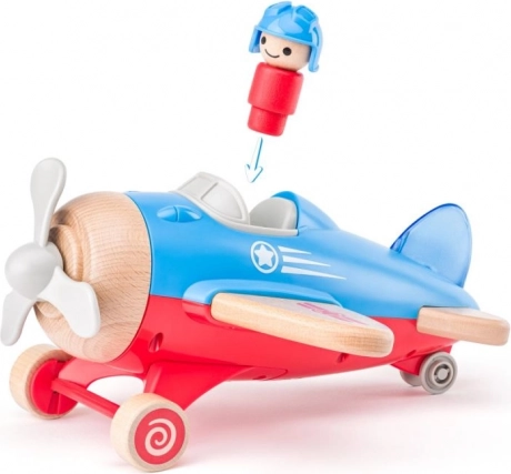 Das Flugzeug ist mit einem drehbaren Propeller und einer kleinen Pilotenfigur ausgestattet, was zum interaktiven Spiel animiert.