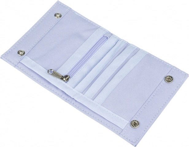 Entdecken Sie die kompakte und stilvolle BAAGL-Geldbörse im beliebten Lilaton. Dank der sicheren Schließung mit zwei Druckknöpfen und dem Reißverschlussfach für Kleingeld ist alles übersichtlich und zuverlässig verstaut.