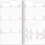 Wochenübersicht mit Kalendarium auf Tschechisch und Slowakisch, mit Ergänzungen auf Englisch, Deutsch, Ungarisch und Russisch.