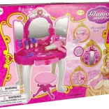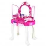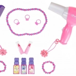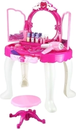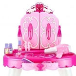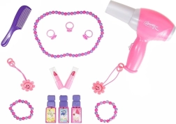 Kinder können mit einem Föhn, einem Kamm, Parfümflaschen, Perlenketten, Armbändern, Ringen und vielen weiteren Accessoires spielen.