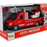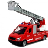 Das Fahrzeug ist mit einer beweglichen Leiter mit einer Länge von bis zu 42 cm ausgestattet! Es gibt auch Dioden, die aus großer Entfernung Aufmerksamkeit erregen können, und einen vorderen Wassertank, der die Quelle für die Sprühpumpe ist - einfach die Pumpe ein paar Mal drücken. Insgesamt ist das Spielzeug im Maßstab 1:16 gehalten.