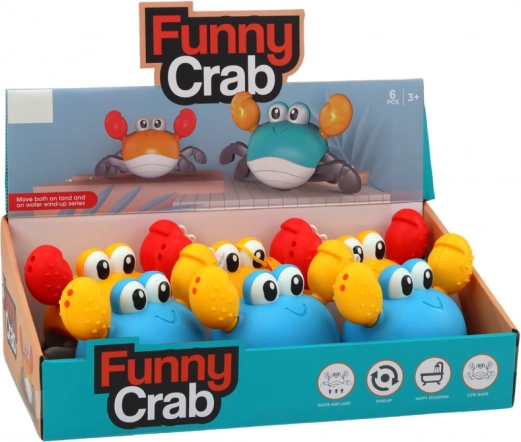 Aufzieh-Badewannenspielzeug Krabbe läuft und schwimmt blau gelb