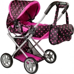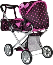 Der Puppenwagen Alice ist leicht, einfach zu handhaben und perfekt für alle kleinen "Mütter". Die Konstruktion aus robustem Metall sorgt für Stabilität und Langlebigkeit. Das schwarz-pink gepunktete Design verleiht dem Wagen ein elegantes Aussehen, während die klappbare Funktion einfaches Tragen und Lagern ermöglicht.