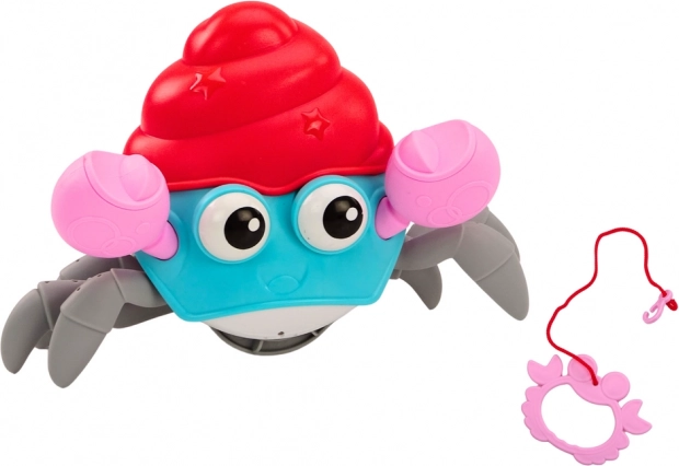Das Spielzeug ist mit einem Drehscheibe an der Rückseite ausgestattet, die man drehen kann, um es aufzuziehen. Die Krabbe bewegt sich, indem sie die natürliche Bewegung eines Krabben imitiert, was die Kinder zur Interaktion und Beobachtung des Mechanismus anregt.
