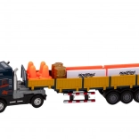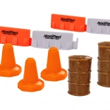 Im Set enthalten sind außerdem 8 Verkehrskegel und 4 Straßensperren in Orange-Weiß zum Erstellen von Verkehrssituationen. Der Lkw verfügt über Antrieb für eigenständige Bewegung, wodurch das Spiel noch spannender wird. Das Produkt hat die CE-Zertifizierung und erfüllt die Norm EN71. Geeignet für Kinder ab 3 Jahren.