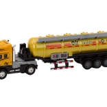 Dieses Tanklastzug-Set bildet eine echte Sattelzugmaschine mit Auflieger im Maßstab 1:24 originalgetreu nach. Das weiße Fahrerhaus und der graue Tankauflieger unterstreichen den realistischen Look, während das Drücken der Kabine Motorstartgeräusche und Rückfahrpiepen mit Lichteffekten aktiviert. Der abnehmbare Auflieger erweitert die Spielmöglichkeiten und erlaubt die separate Nutzung von Zugmaschine und Auflieger.