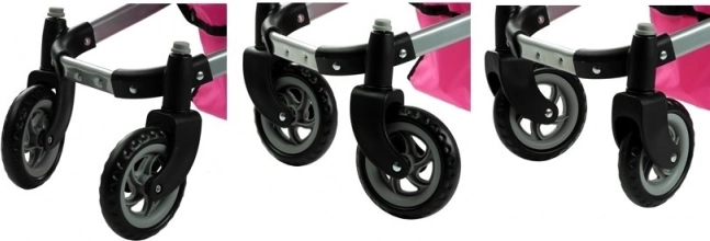 Zwei größere Hinterräder und zwei kleinere schwenkbare Vorderräder 360° erleichtern das Fahren und Manövrieren drinnen wie draußen. Der verstellbare Schiebegriff passt sich Kindern unterschiedlicher Größe an und das klappbare Verdeck mit anclipbarer Fußabdeckung schützt die Puppe vor Wind und Sonne. Pflegeleichte Textilien und ein weicher Schaumgriff erhöhen den Komfort beim täglichen Spiel.