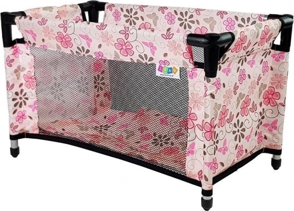 Suchen Sie ein stilvolles und zugleich praktisches Puppenbett? Das Modell Alice in rosa Blumen kombiniert ein sicheres Mesh-Design mit einer robusten Konstruktion aus leichten Rohren und abnehmbaren Textilteilen. Dank der kompakten Maße eignet es sich ideal fürs Kinderzimmer und für unterwegs.