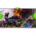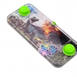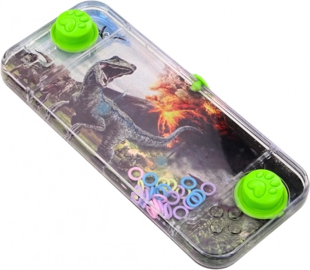 Das handliche Wasserspiel mit Carnotaurus-Dinosaurier ist einfach, aber äußerst fesselnd. In dem klaren Wasserbehälter schweben bunte Ringe, und Ihre Aufgabe ist es, mit zwei grünen Tasten den Druck so zu dosieren, dass die Ringe auf zwei innenliegende Stifte gesetzt werden.