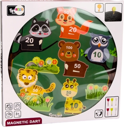 Dieses magnetische Zielscheibenspiel bietet Kindern stundenlange, freudige und sichere Unterhaltung. Die bunte grüne Scheibe ist mit Tieren (Giraffe, Fuchs, Tiger u. a.) und Punktewerten gestaltet, die zur Leistungssteigerung motivieren. Der magnetische Mechanismus ersetzt scharfe Spitzen, sodass das Spiel auch für jüngere Kinder geeignet ist.