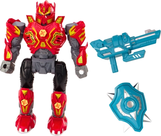 Der türkisfarbene Schild und die Waffe verwandeln den Roboter in einen Helden, der für Missionen bereit ist. Kinder fördern ihre Kreativität und Erzählfähigkeiten.