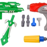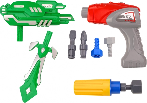 Das Set enthält alles für den sofortigen Spielstart: Montageroboter, Spielzeug-Bohrmaschine mit Aufsätzen, Schwert und Rüstung sowie AG13-Batterien. Dank der robusten Kunststoffausführung ist es ideal für den täglichen Einsatz und die Förderung technischen Denkens.