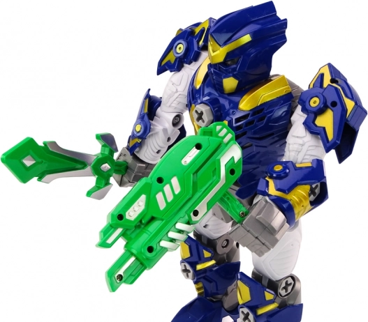 Der Roboter ist mit Schwert und Waffe für spannende Missionen ausgestattet. Farbgestaltung und bewegliche Teile regen Fantasie und kreatives Spiel an.