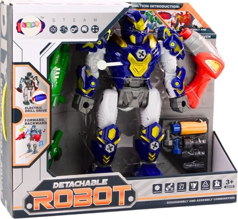 Mit der Spielzeug-Bohrmaschine und dem Schraubendreher können Kinder den Roboter zerlegen und wieder zusammensetzen. Fördert Feinmotorik, Geduld und technische Neugier.