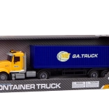 Der gelbe LKW mit blauem Anhänger besticht durch Licht- und Soundeffekte, die für Realismus sorgen und den Spielspaß erhöhen. Motorgeräusche, Hupe und Rückfahrgeräusche lassen das Kind sich wie ein echter Fahrer eines großen LKWs fühlen.