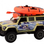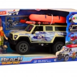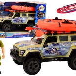Der Serfera-Geländewagen ist das ideale Spielzeug für kleine Fans von Wasserabenteuern. Das sandfarbene Fahrzeug mit Serfera-Markierung verfügt über Dachleuchten, die sich auf Knopfdruck einschalten, und gibt realistische Motorgeräusche von sich. Auf dem Dach befindet sich außerdem ein Boot mit Rudern, das dem Spiel noch mehr Realismus verleiht. Öffnende Türen und ein Kofferraum ermöglichen das einfache Platzieren von Figuren im Inneren des Fahrzeugs.