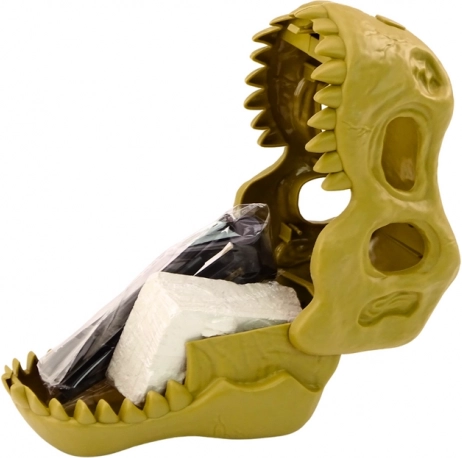 Das gesamte Set ist in einem Kunststoff-Dinosaurierschädel untergebracht, der eine doppelte Funktion erfüllt: Er ist ein praktischer Aufbewahrungsbehälter und eine stilvolle Dekoration – ideal für das Zimmer eines kleinen Dinosaurierfans. So bietet das Set nicht nur langanhaltenden Spielspaß, sondern auch ein attraktives dekoratives Element.