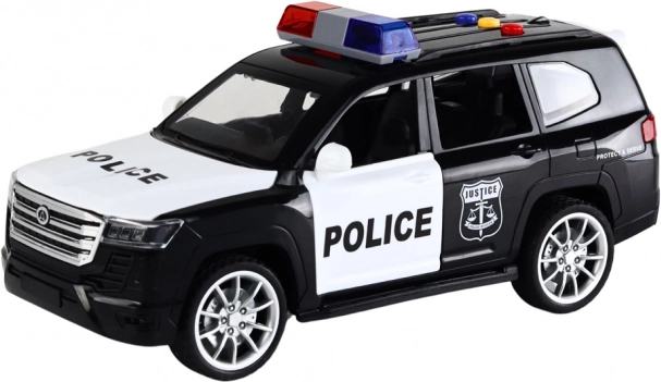 Dieses interaktive Polizeiauto wurde entwickelt, um jedem Kind viel Spaß zu bereiten. Mit seinem schwarz-weißen Design und den markanten Aufschriften „Polizei“ vermittelt es einen realistischen Eindruck. Beim Spielen genießen Kinder die durch drei Tasten auf dem Dach aktivierten Soundeffekte, die Sirenen, Hupe und andere Polizeigeräusche imitieren.