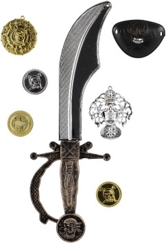 Verwandeln Sie jeden Tag in ein kleines Abenteuer auf See. Das Piratenset bietet alles, was ein kleiner Pirat für fantasievolles Spiel braucht – vom leichten Kunststoffschwert über die Augenklappe bis hin zu Piratenmünzen. Dank der sicheren Ausführung und des geringen Gewichts liegen die Zubehörteile auch kleineren Kindern gut in der Hand.