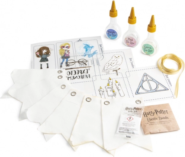 Verwandle jede Feier in ein magisches Ereignis. Das Batik-Set für Wimpel mit offizieller Harry Potter-Lizenz ermöglicht es dir, individuelle Dekorationen mit effektvollem Tie-Dye-Look ganz einfach herzustellen. Dank der enthaltenen Farben und Zubehörteile ist der Prozess unkompliziert, macht Spaß und ist auch für Einsteiger geeignet.
