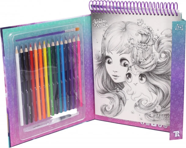 Aquarellmalbuch Nebulous Stars mit 20 Illustrationen und 15 Markern. Kreativer Spaß für Kinder.