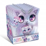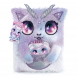 Violett‑pastelliges Design mit glitzernden Hörnchen, Öhrchen und großen sternklaren Augen. Das Tagebuch ist ein Hingucker – zum Anfassen und Ausstellen.