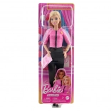 Barbie ist bereit, mit ihrem eleganten rosa-schwarzen Outfit und den Accessoires Geschichten über Führung zu inspirieren.