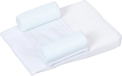 Dies beruht auf der Neigung des elastischen Memory-Schaum-Materials und zwei seitlichen Stützen, die mit Klettverschluss anpassbar sind.