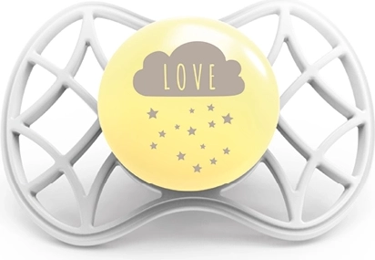 Der Schnuller ist von Experten sorgfältig entworfen und an die natürlichen Bedürfnisse von Kindern angepasst. Dank der innovativen Form und des Materials trägt er zur Gesundheit des Kindes bei. Der Schnuller bietet maximale Atmungsaktivität, was besseres Atmen ermöglicht und die Ansammlung von Speichel um den Mund verhindert, die die Haut reizen könnte.
