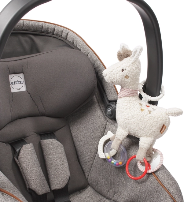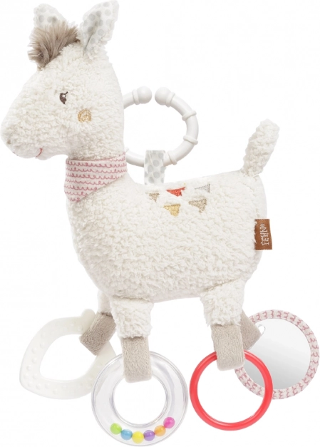 Es ist ein kuscheliges Plüschtier und Beschützer in einem, das schnell zum Kinderfreund wird. An den Beinen hat es interessante Spielzeuge, die motorische Fähigkeiten fördern und viel Freude bereiten. Die ungewöhnliche Form und verschiedene Materialien bieten ein großartiges taktiles und sensorisches Erlebnis. Das Lama-Spielzeug sorgt unterwegs für besten Spaß. Es lässt sich schnell an Kinderwagen und Autositzen befestigen.