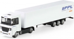 Entdecken Sie das detailliert ausgearbeitete PPL-Lkw-Modell, das einem echten Logistik-Sattelzug nachempfunden ist. Die Metallausführung der Kabine verleiht Robustheit, der PVC-Auflieger mit authentischem PPL-Logo fällt sofort ins Auge. Dank Freilauf bewegt sich das Modell sanft auf ebenen Flächen und ist ideal für den spielerischen Transport von „Sendungen“ sowie für die Präsentation in der Vitrine.