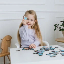 Wir bieten Ihnen Holzpuzzles, die eine ganz neue Dimension des Puzzelns eröffnen. Das Set enthält 50 Teile, davon 10 in Form von einzigartigen Figuren, was während des Puzzelns eine interessante Herausforderung darstellt. Gleichzeitig werden Sie die Qualität der Verarbeitung und die Details jedes Stücks, einschließlich des dekorativen Musters auf der Rückseite, zu schätzen wissen.