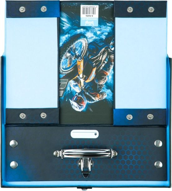 Der faltbare Schulrucksack mit Motocross-Motiv besteht aus hochwertigem laminiertem Papier mit beschlagenen Ecken für erhöhte Haltbarkeit. Dank der Druckknöpfe bietet er die Möglichkeit, ihn einfach zusammenzufalten und auseinanderzusetzen, was die Lagerung und den Transport erleichtert. Der Metallgriff und der klassische Verschluss gewährleisten eine einfache Handhabung und sicheren Verschluss des Inhalts.