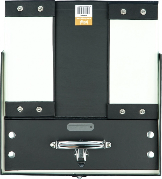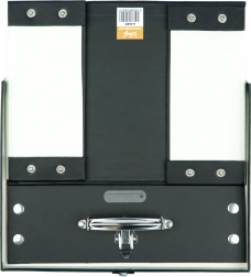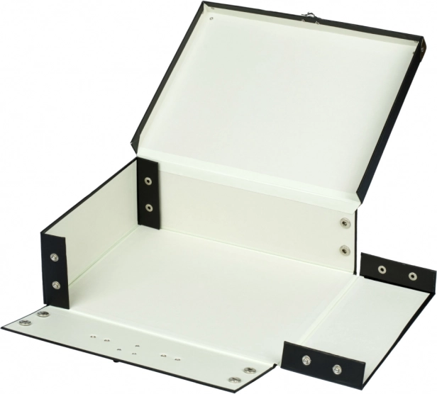 Der Koffer ist mit Metallecken und einem klassischen Verschluss für die sichere Aufbewahrung ausgestattet. Zudem verfügt er über Druckknöpfe, die ein einfaches Falten und Entfalten ermöglichen.