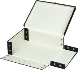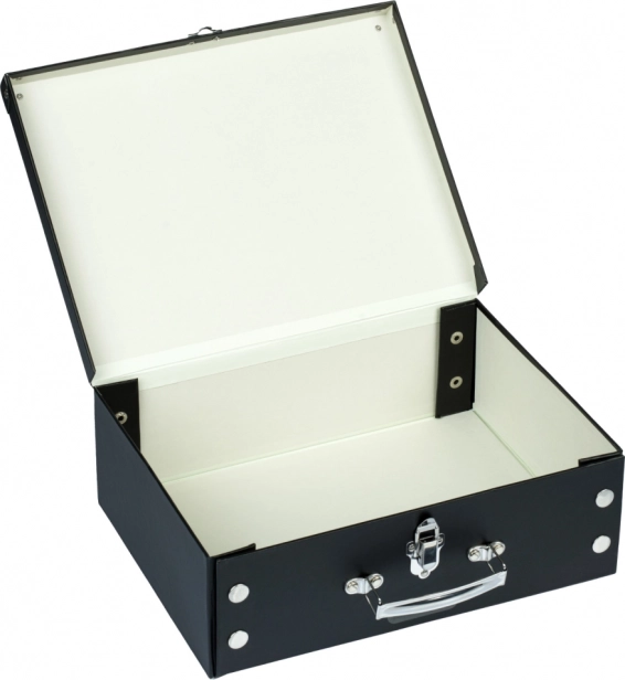 Der Koffer besteht aus robustem laminiertem Papier, das seine Langlebigkeit und lange Lebensdauer gewährleistet.