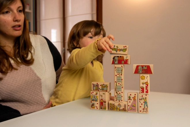 Jeder Baustein ist mit farbenfrohen Illustrationen verziert, die die Vorstellungskraft anregen und einen pädagogischen Wert bieten.