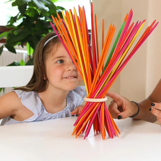 Shanghaier Sonne ist ein traditionelles Mikado-Spiel, das sich in ein dekoratives Element verwandeln lässt. Die bunten Holzstäbchen können zu einem Ring zusammengefügt und als Innendekoration verwendet werden. Dieses Spiel ist für zwei oder mehr Spieler ab 5 Jahren geeignet und fördert Konzentration und Geschicklichkeit.