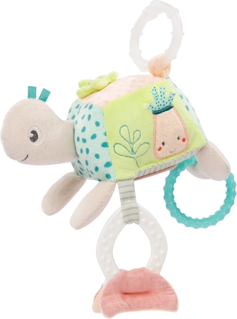 Dank des praktischen C-Rings lässt sich der Stoffwürfel mit Meerestieren leicht am Kinderwagen oder an der Babyschale befestigen und wird so schnell zum treuen Begleiter Ihres Kindes!