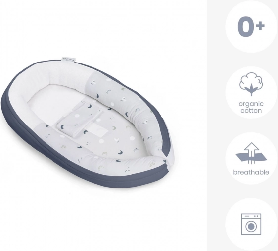 Doomoo Cocoon hilft Kindern, den Übergang vom Mutterleib in das eigene Bettchen zu meistern. Entwickelt aus den weichsten Materialien, wobei der Fokus auf der Atmungsaktivität um den Kopf des Kindes gelegt wird. Im Nestchen gibt es keine Schnüre oder Kleinteile, die gefährlich sein könnten.