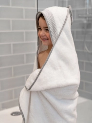 Das Doomoo Dry&Play Handtuch ist groß genug, sodass sich nach dem Baden auch größere Kinder darin einkuscheln können. Es besteht aus weicher Bio-Baumwolle und ist OEKO-Tex zertifiziert.