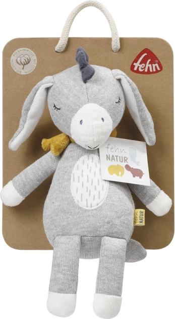 Entzückender Esel Kuscheltier von FehnNatur, gefertigt aus zertifizierter Bio-Baumwolle. Perfekt für Tag und Nacht. Größe: 28 cm.