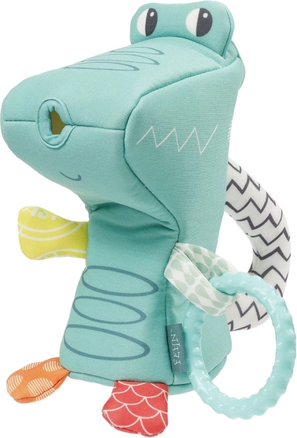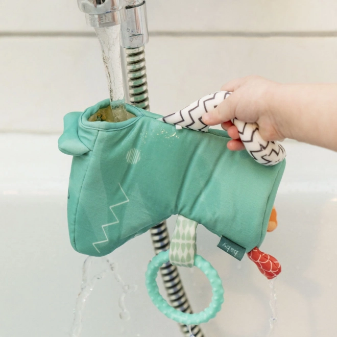 Das niedliche Gießkrokodil ist ein toller Begleiter für die Badewanne, den Pool oder den Urlaub am Strand. Die kleine Stoffgießkanne wird einfach kurz ins Wasser getaucht oder unter fließendem Wasser gefüllt – und schon kann das Gießen beginnen. Der Stoffgriff ist ideal für Kinderhände. Dank des praktischen Rings lässt sich das Spielzeug am Kinderwagen oder Autositz befestigen und nach draußen mitnehmen.