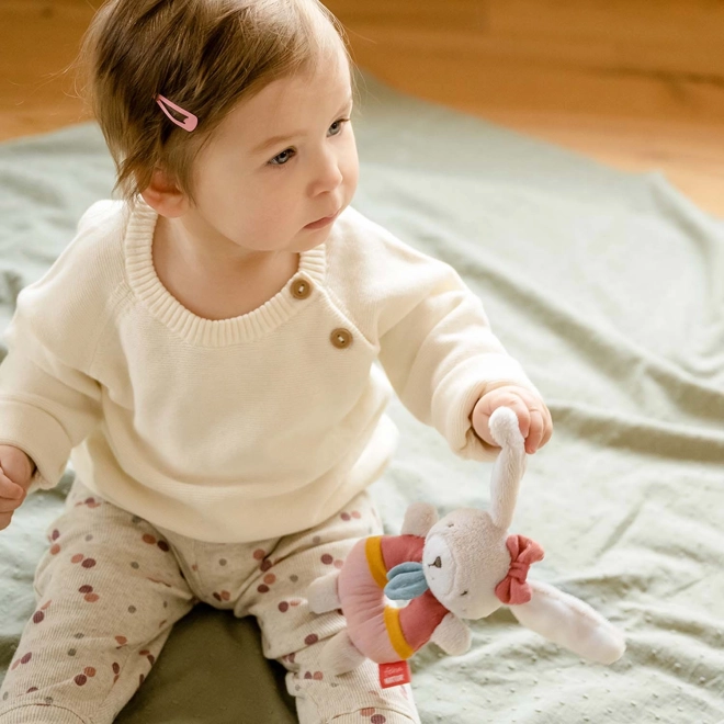 Was dieses Spielzeug einzigartig macht, ist die Kombination aus interessanten Materialien und stimulierenden Klängen, die die Aufmerksamkeit halten und die Neugier der Kinder wecken. Der weiche Hase ist immer bereit zum Spielen und Kuscheln.
