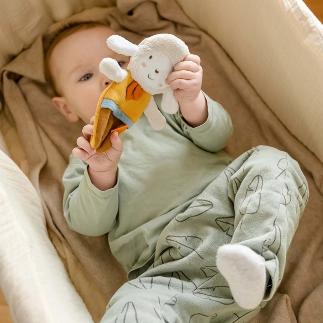 Erleben Sie die Babyrassel Schaf von FehnNatur – ein charmantes Spielzeug zur Förderung der Sinne und Motorik Ihres Kindes. Perfekt als Geschenk zur Geburt oder Taufe.