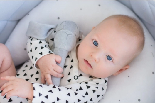Hergestellt aus dem weichsten Stoff. Erzeugt beim Bewegen ein fröhliches Geräusch.