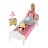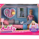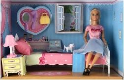 Das Set enthält ein Bett, einen Schminktisch, eine Lampe und Haustiere für vollständige Spielemöglichkeiten.