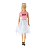 Die Puppe ist in einem modischen Set gekleidet, das zu kreativem Stylen und Dekorieren inspiriert.